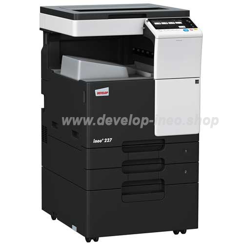У базову комплектацію Develop ineo+ 227 входить: гігабітний мережевий друк, автоматичний двосторонній друк, сканування на сервер або e-mail, лоток ручної подачі, вихідний лоток, PS/PCL принт-контролер, 2 касети для паперу (2 х 500 аркушів), жорсткий диск на 250Гб, сканування (за наявності автоподатчика, до 45 стор/хв), можливість друку банерів.