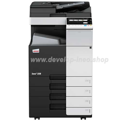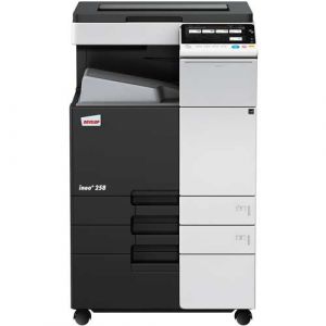 В базову комплектацію ineo+ 258 входить: гігабітний мережевий друк, автоматичний двосторонній друк, сканування на сервер або e-mail, лоток ручної подачі, вихідний лоток, PS/PCL принт-контролер, 2 касети для паперу (2 х 500 аркушів), жорсткий диск 250 ГБ, швидкісне сканування (за наявності автоподатчика, до 160 стор/хв), можливість друку банерів до 1200 мм довжиною.